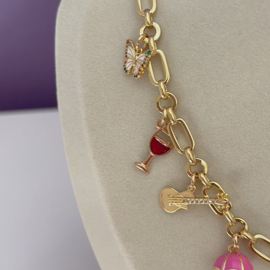 24k Gold Plated Chain Necklace with Taylor Swift Eras Inspired Charms